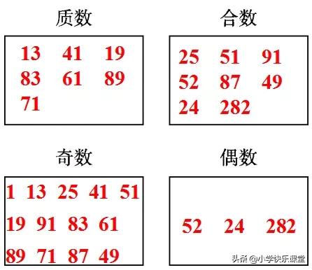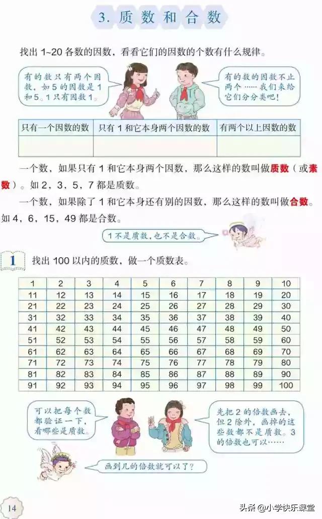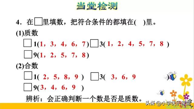 (2)在自然数1~20中,质数有(2,3,5,7,11,13,17,19 ),合数有(4,6,8,9,10,12,14,15,16,18,20 ),既是偶数又是质数的数是(2)。