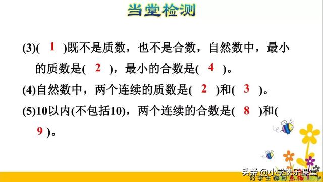 (1)1既不是(质数),也不是(合数)。自然数中,最小的质数是(2),最小的合数是(4)。