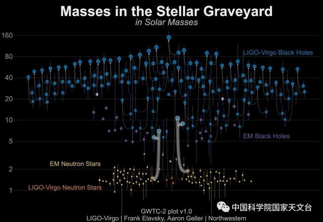 图6. LIGO 探测到大量的几十个太阳质量的双黑洞并合事件