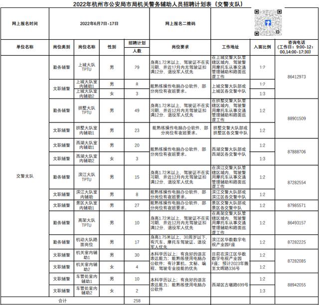 杭州市公安局计划面向社会公开招聘702名警务辅助人员。