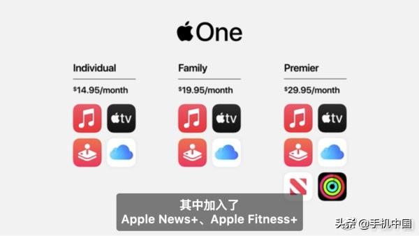 “Apple One”分为不同的套餐级别,14.95美元每月的“Apple One”套餐包含Apple TV+、Apple Music、Apple Arcade以及扩增50G容量的iCloud空间,19.95美元每月的“Apple One”套餐包含Apple TV+、Apple Music、Apple Arcade以及扩增200G容量的iCloud空间,29.95美元每月的“Apple One”套餐包含Apple TV+、Apple Music、Apple Arcade、扩增2T容量的iCloud空间,最新发布的Apple Fitness+也在其中。对了,“Apple One”还可以与家人分享,将于今年秋季推出,只不过首发地区不包含中国大陆。