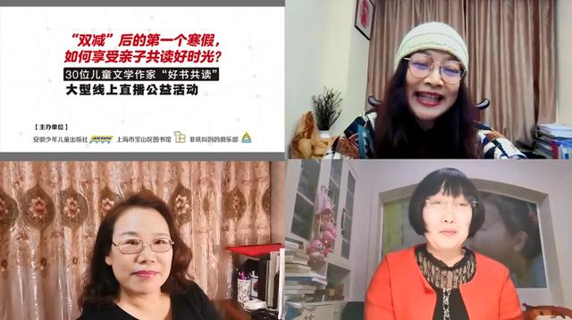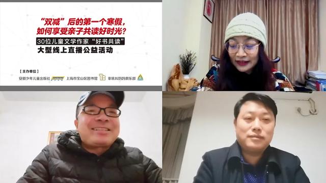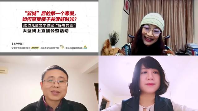 2022年1月26日安徽合肥第一场雪花飘飞,云上直播间里却是一片暖意。“双减”后的第一个寒假,如何享受亲子共读好时光?——全国30位儿童文学作家“好书共读”大型线上直播公益活动成功举办。