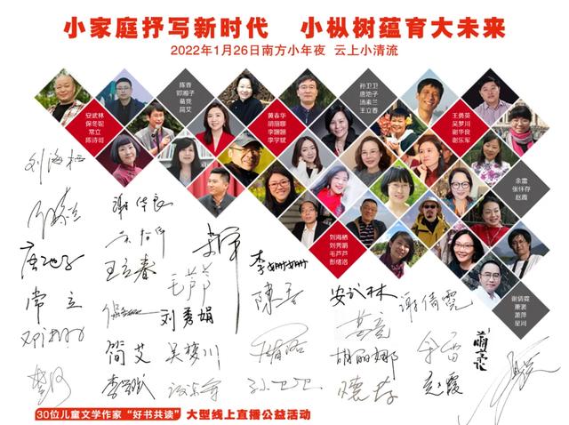#30位儿童文学作家“好书共读”直播花絮 30位儿童文学作家郑重签名发出“小年夜好爸爸好妈妈阅读倡议”:让诗意温暖生活,让文学照耀成长;小家庭抒写新时代,小枞树蕴育大未来!❤️❤️❤️