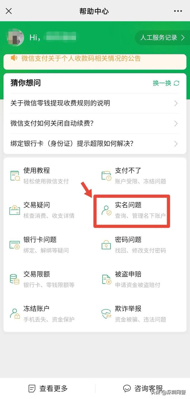 再点击“实名问题”—“查询名下账户”