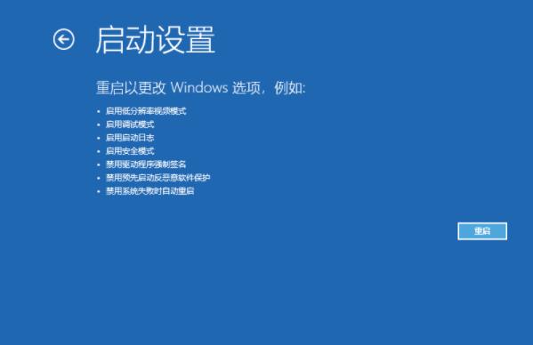 4、在启动设置,直接点击重启按钮。