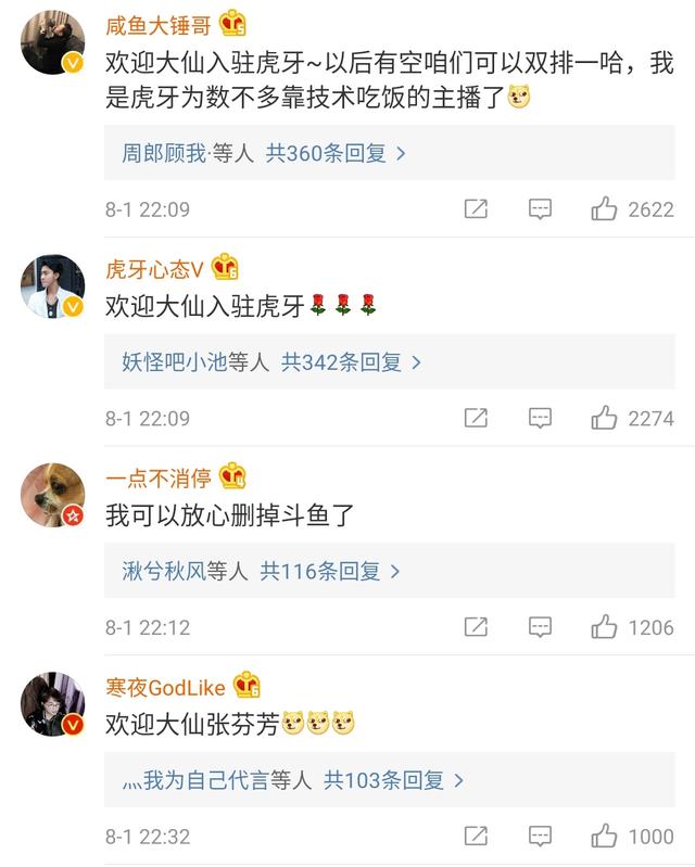 除了虎牙官方给大仙的支持,仙友粉丝们的支持,虎牙王者荣耀专区的许多主播也都对大仙的到来表示了欢迎比如大锤哥、心态、寒夜等人。