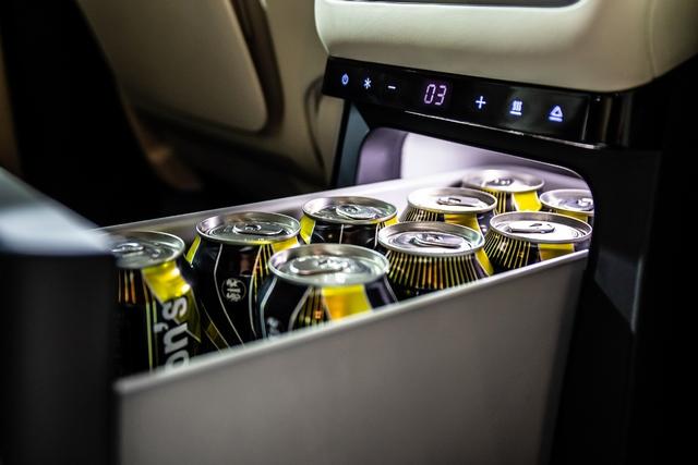为什么说 L9 的后排像是商务 MPV 呢?右后座椅小桌板和冷暖箱这些配置上,我们往往只能在商务属性的 MPV 上见到这些配置。除了家庭用途,理想 L9 的用户也完全可以把它当成移动办公室来使用。