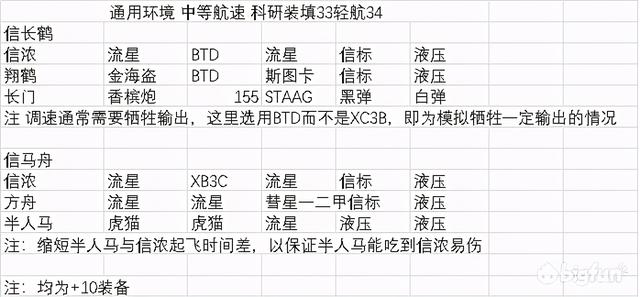 5装备选择根据调速需求,三只航母CD需要比较接近,简单来说,半人马调慢,方舟、信浓调快。