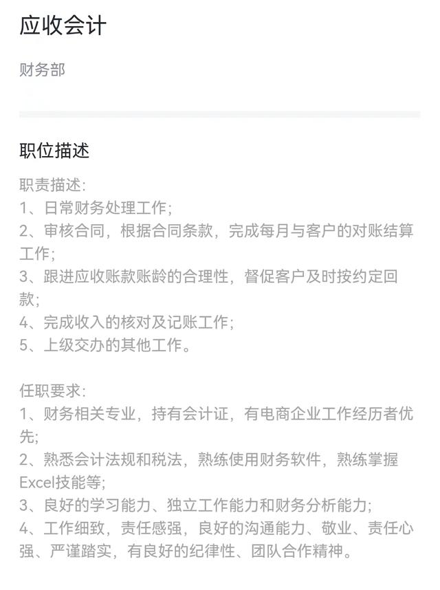 我们看到任职要求里特别突出,有三类人群可以被优先录用,“财务相关专业、持有会计证、有电商企业工作经历者优先”。