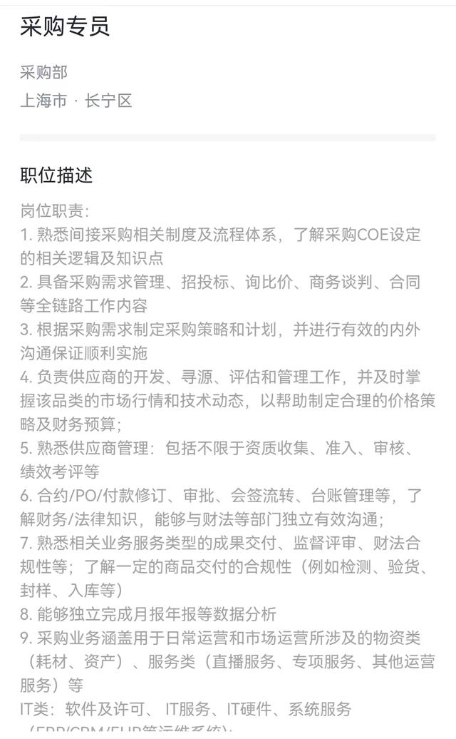相较于招商助理,采购专员的要求更高,需要你能够独立完成一些采购数据分析。
