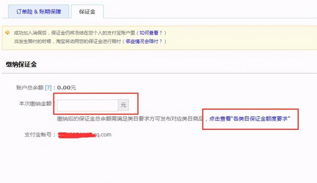 第二步:点击进去缴纳相应的保证金金额。 每个类目对应的保证金额度也稍有不同。