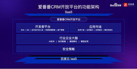 与此同时,百度的AI技术积累也充分体现在爱番番身上,让其成为最具AI-powered的CRM产品。7月24日,在爱番番CRM开放平台发布会上,百度正式宣布推出爱番番开放平台,赋能推动CRM服务商服务客户,使AI的智能能力贯穿于客户关系管理的全流程。