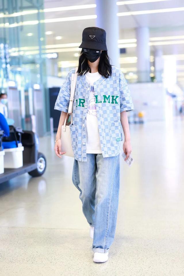 前几天杨幂在《花儿与少年》路透里穿花衬衫,超有夏季露营的氛围感。