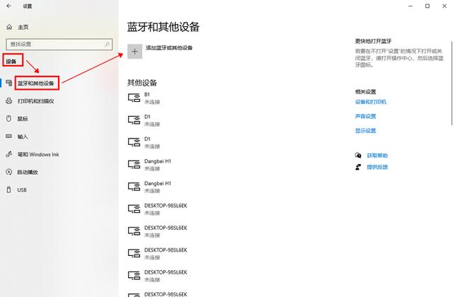 第二种方法,直接Windows设置菜单里的【设备】设置,找到【蓝牙与其他设备】,点击+号添加设备。