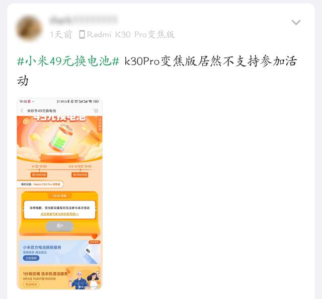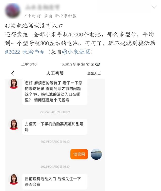 还有的网友向小米发问后面是否还有不限名额的 49 元换电池活动。