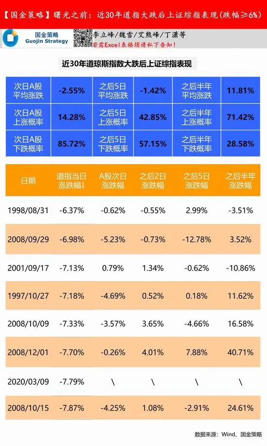 复盘近30年道琼斯指数大跌后上证综指表现: