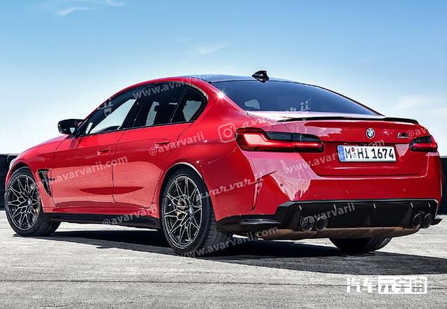 从发布的渲染图片中可以看出,宝马全新一代M5前脸保留了经典的熏黑双肾自适应格栅,量产版车型两侧将提供激光LED头灯组,下方格栅造型也与宝马X3保持高度相似。车尾部分将继续使用双边双出式排气布局,并换装了全新L形尾灯组。