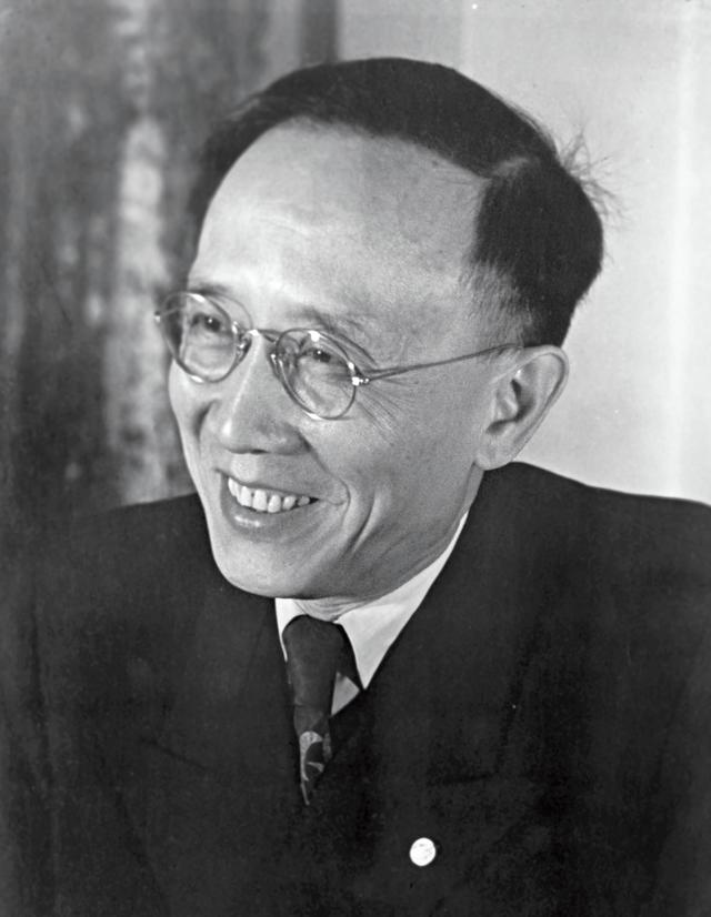 1946年秋,郭沫若(中)与即将撤离上海的周恩来(左)、李维汉(右)合影。