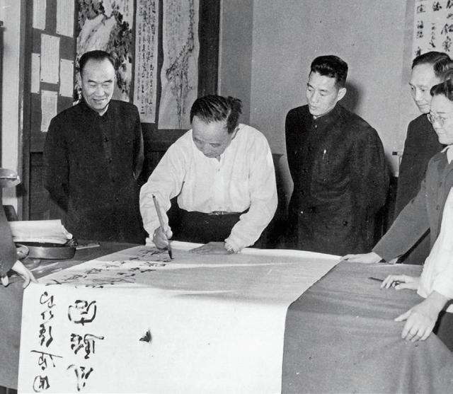 1963年春节,郭沫若在政协礼堂书画室题字。