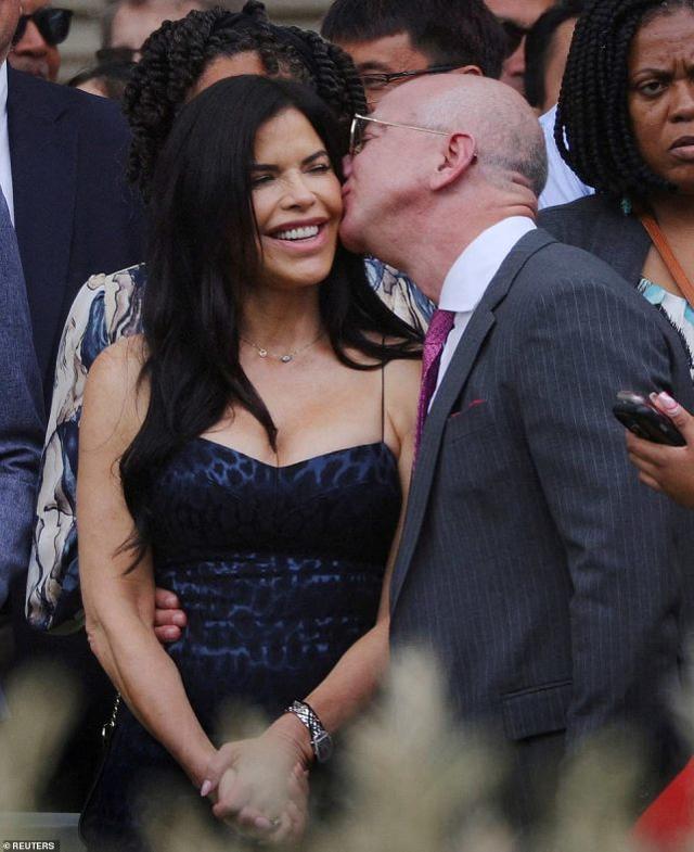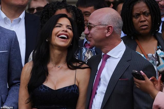 仿佛身旁没有人一般,两个人有说有笑很是热闹,亿万富翁似乎被穿着豹纹吊带裙的女友迷住了。不仅手难以离开桑切斯的腰肢,嘴也要凑到其脸颊上,用亲吻表达爱意。这个举动让现年52岁的前新闻主播乐不可支,半眯着眼睛陶醉其中。