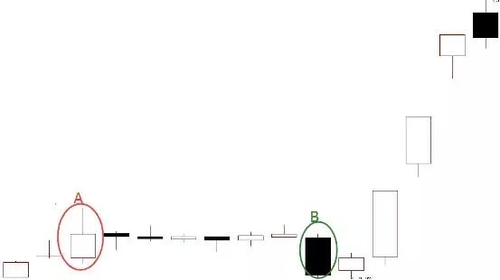 从上案例图可知,股价在A处出现了一根上影线与阳线实体相当的上影K线,当日成交量明显放大。之后成交量日益萎缩股价展开横盘震荡,直到B点出现一根看似吓人的大阴线,但是重心却未见明显下移。随后股价迅速止跌并以涨停板形势突破盘整,之后股价大幅上扬。这样的一个组合形态是经典的试盘-洗盘-拉升的过程,A处的长上影线起到了试探压力的作用。而后面的涨停板的突破是宣告整理完毕,并且股价必须要高于A点上影线的价格。