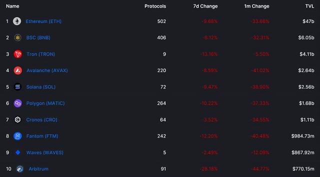 (当前各大公链TVL,来源DefiLlama)