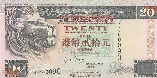 所以实际上来说,港元只是个兑换卷,拿着港币你就可以兑换成美元,然后在兑换成人民币,那么真正属于香港发行的货币其实只有10块钱的纸币,和一些零散的硬币。所以大家能在10元的纸币上面看到,“法定货币”这四个字,但是在20-1000面值的纸币上,可以看到“凭票即付”这四个字。