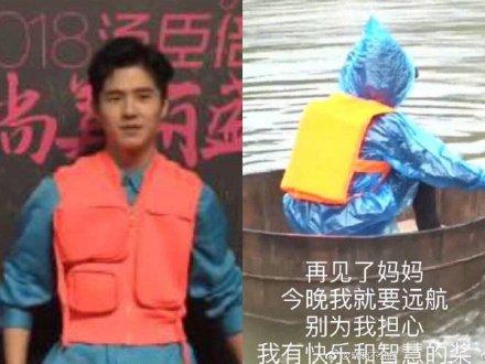 乍一看这身衣服,橙色的救生衣马甲加上里面睡衣一样的蓝色套装,这真的是一个小鲜肉穿来走红毯的衣服吗?果然我们的昊然弟弟没有什么走偶像路线的打算。