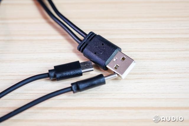HiBy海贝MC1无线领夹麦克风贴心的附赠了一条USB-A to Type-C一分二充电线,一条线当两条用,告别外出时太多线材的烦恼。