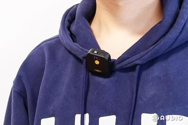 在实际使用发射器夹在衣领上不会有下坠感,走路的时候也不会四处晃动。