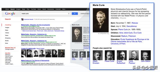 知识图谱:强力的信息补充上面我们已经了解了「精选摘要」,也见识了它的「胡说八道」,那当我们意识到精选摘要似乎在「乱侃」的时候怎么办?或者这个搜索页面根本就没有精选摘要……