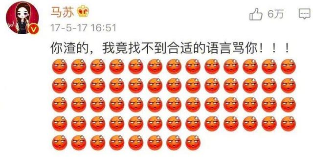 结果风水轮流转,马苏因为李小璐之间陷入风波,刘洲成立马出现,评论马苏"你渣的我竟然找不到言语骂你",用同样的话回复了马苏。