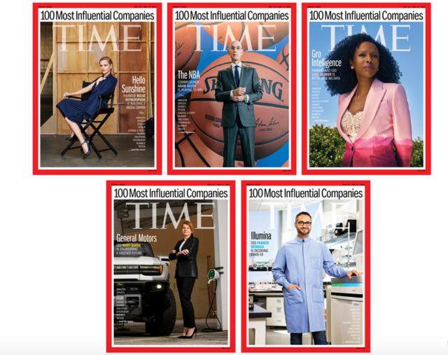这次的时代杂志,选用用百名名单中5家公司CEO的照片,作为杂志封面,其中包括了: