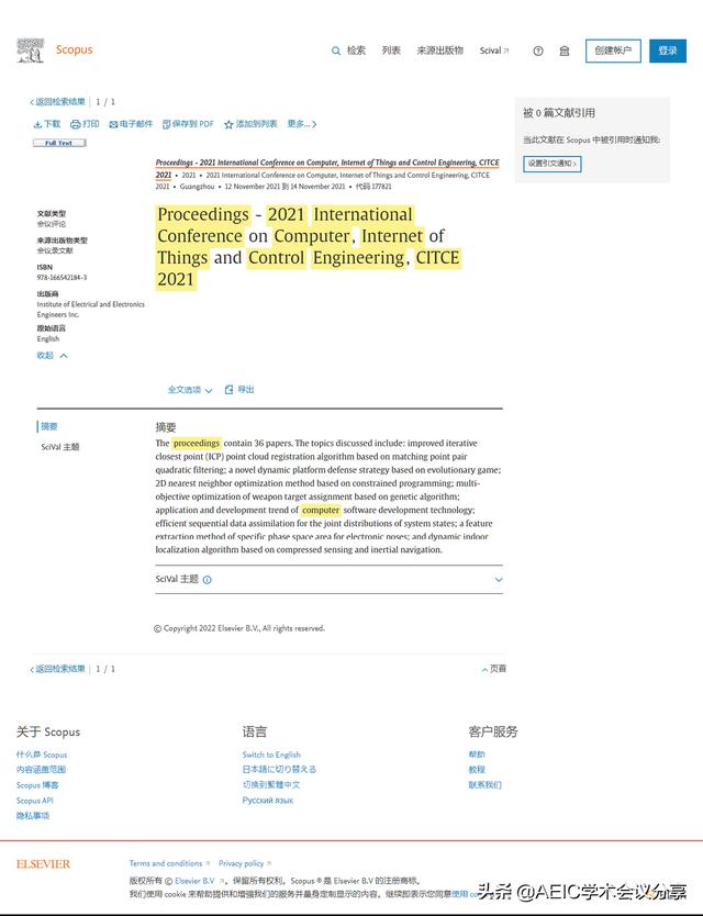 CITCE 2021已于2021年11月12日-11月14日成功举办,并完成检索。