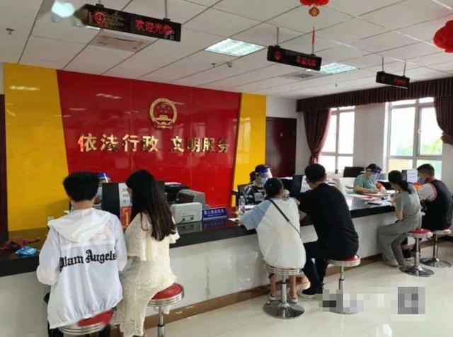 炎热的天气,来办理手续的人当中,仅有他们两人戴着口罩。
