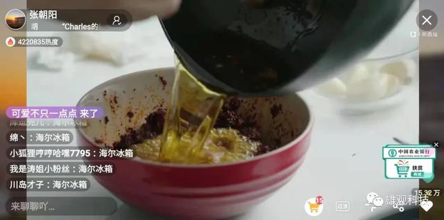 在直播中,全国网友看到:把大蒜、黑芝麻捣碎,倒入香油,加入五倍的秦椒面;准备好了食材,张朝阳烧热菜籽油,“油热了,先用勺子舀出来一点,不然会过于熟了。一次次泼,最后把油全部泼进去。”随着“滋啦”一声响,直播间评论也“炸了”:“颜色好漂亮!”随着厨房温度上升,搜狐视频直播间的热度也达到了500多万,网友纷纷留言:“真是西安好男人。”“全网最会做饭的大佬。”
