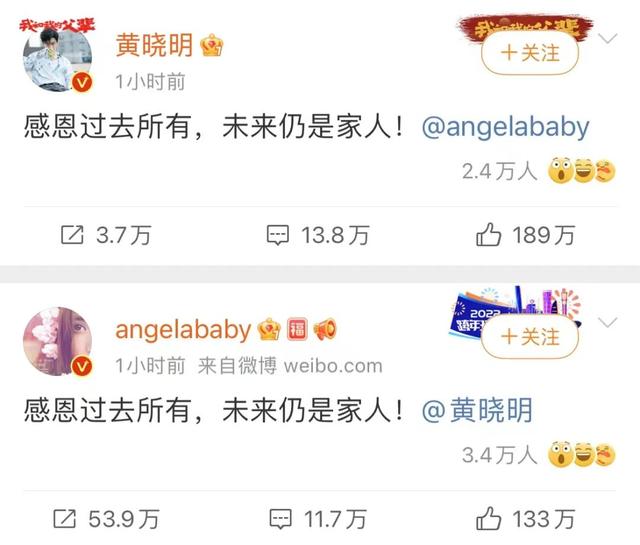 今日,黄晓明与Angelababy在微博上官宣离婚,两人同时发文并艾特了对方,发的内容是同样感恩过去,并展望未来。