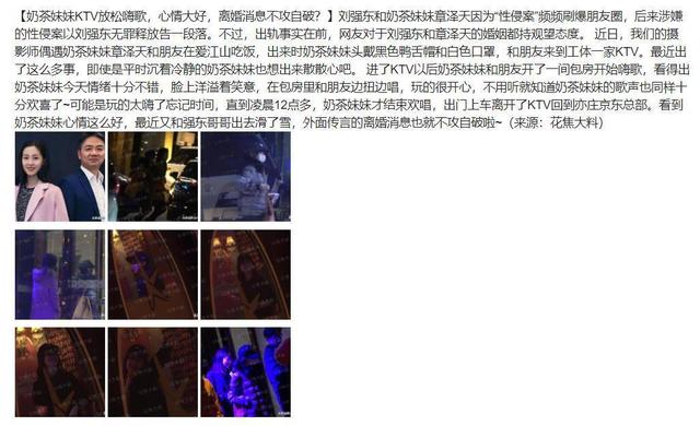 此后,又有媒体爆出,章泽天头戴黑色鸭舌帽和白色口罩,和朋友到一家KTV嗨歌散心。脸上洋溢着笑意,在包房里和朋友边扭边唱,玩的很开心。直到凌晨12点多,上车回到亦庄京东总部。