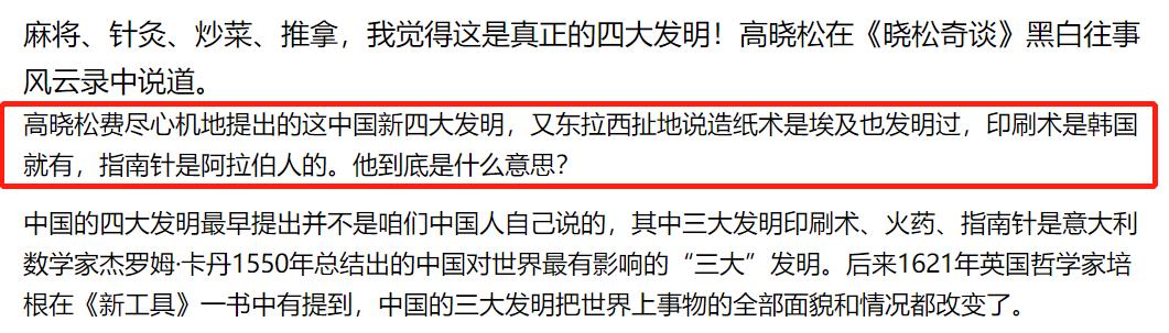 比如,在中国的“四大发明”上,他概念混淆称这些别的国家也有。