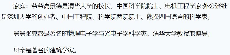 他的爷爷、外公、外婆、舅舅、父母等,不是毕业于清华和北大,就是留洋回来。一个个不是行业专家,就是两院院士。