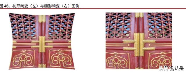 广角镜头朝大视场、大相对孔径(小 F 数)、小型化发展,将提升对非球面镜头的需 求。理想的镜头能在感光器表面实现完全不变形的投影,但由于透镜固有的特性(凸透镜 汇聚光线、凹透镜发散光线),实际光学系统都会产生或多或少的畸变。其中,长焦镜头 容易出现枕形畸变(视觉上向内坍缩),广角镜头容易产生桶形畸变(视觉上图像往外鼓)。相比长焦镜头的枕形畸变,超广角镜头的桶形畸变更容易被察觉。随光学行业规格升级, 广角镜头朝更大视角场、大孔径、小型化发展,这一方面将导致像差校正难度提升,进一 步增加镜头结构的复杂程度,另一方面更大视场角也将带来更严重的畸变。我们认为,未 来,随广角镜头规格朝大视场、大孔径、小型化发展,优质的非球面玻璃有望被广泛应用 于广角镜头,掌握领先玻璃镜头制造技术的企业将因此受益。