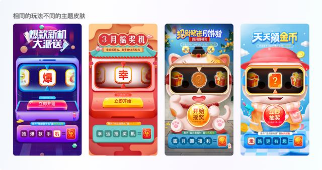 利用迷恋小概率事件效应(在概率论中,经济学家把在大量重复试验中出现的频率非常低,甚至接近于0的事件,称之为小概率事件。对于小概率事件,用户往往都抱着侥幸心理,而且会放大这份心理。“万一中奖了呢”是所有用户的内心写照)常规的互动类小游戏比如大转盘、扭蛋机等,相比静态页面,增加抽奖环节比直接领取优惠券的方式,红包、优惠券等奖励的使用率更高。