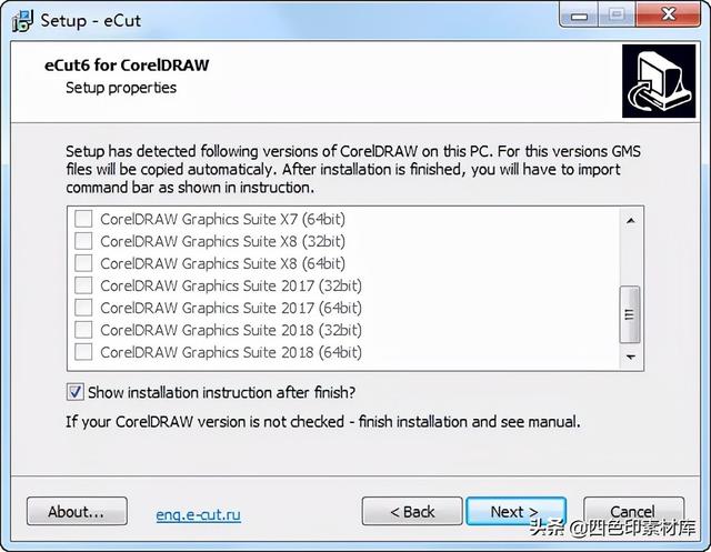 安装完成后直接把C:eCuteCut6CorelDRAW GMS下相应的eCut6.gms复制到CorelDRAW安装目录DrawGMS下就可以(如果安装时能识别到CDR路径则此操作可不做,不过测试发现,CorelDRAW Technical Suite 2018即使能识别路径也不会自动复制eCut6.gms,所以2018就自己手工复制一下eCut6.gms过去吧)。
