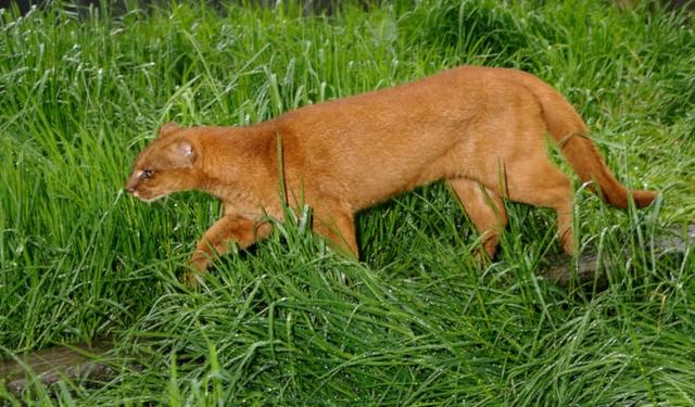 美洲豹不管是与细腰猫还是美洲狮,虽然从地图上看它们的栖息地几乎重叠在一起,但是却有着本质的区别,美洲豹属于猫科豹亚科豹属里面的物种,跟狮子、老虎的亲缘关系较近,它是一种不折不扣的大猫,成年后平均体重为56-96千克,而细腰猫、美洲狮,属于猫科猫亚科,严格来说是“小猫”。