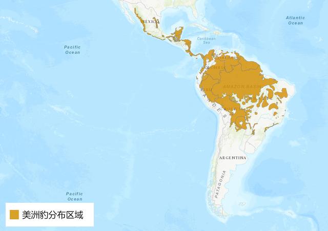 美洲豹由于体态跟老虎很像,所以也被称为美洲虎,主要生活在中南美洲,栖息地从墨西哥一直向南延伸至阿根廷北部,与历史分布相比,美洲豹的栖息地已经丧失了一半以上,不过好在南美洲热带雨林的独特环境,专家评估世界上70%的美洲豹生存状态比较乐观,有很大的机会继续存活下去。