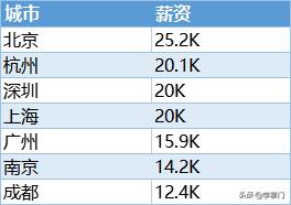 排除掉人才需求量较小的城市,笔者为大家统计了前7名的薪资,从表格来看,这7个城市的薪酬分布情况总体来说都比较集中,北京以25.2K位列榜首,除此之外,上海,深圳、杭州的平均薪资也都超过了10K,大家可以将自己的薪资和上图所比对,来看看自己正处于哪个位置。