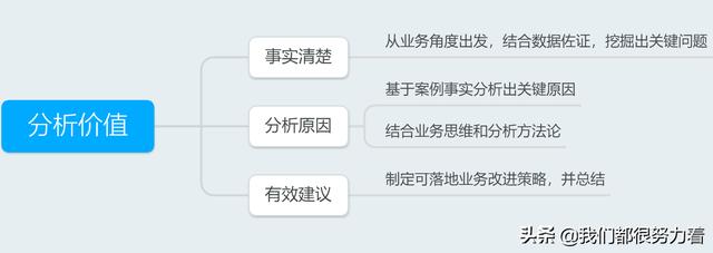 首先要明确数据分析的意义在于发现业务中的问题痛点,并提出解决方案。所以在从事数据分析工作,一定不仅局限于描述现象,要带着数据驱动业务的思维,做有价值的分析!
