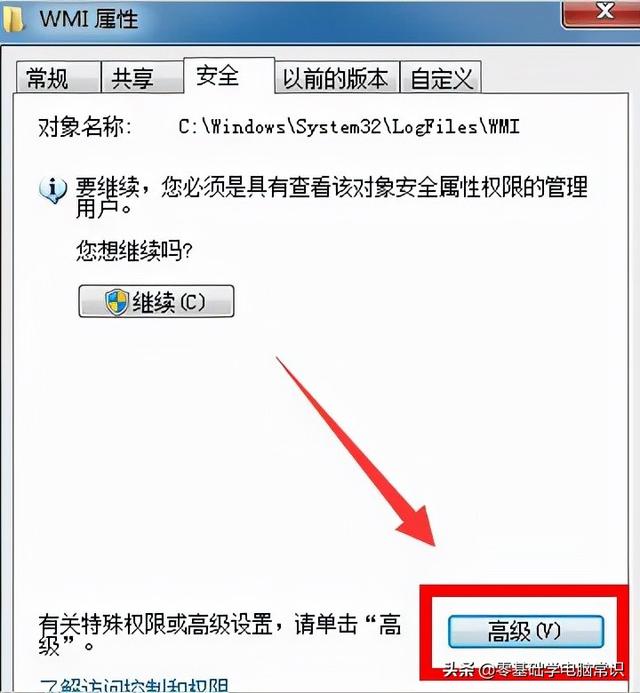 3.在WMI文件夹属性页上,选择安全选项卡——单击高级设置 如下图所示