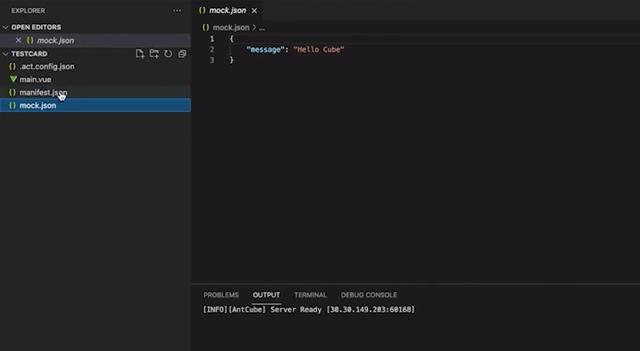 上图左侧即卡片的工程文件,包括工程配置文件、main.vue(卡片样式、逻辑文件) 、 manifest.json(卡片的配置文件、模版本号、卡片名称)、mock.json(本地 mock 文件)。