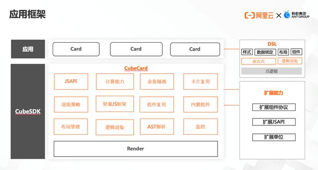蚂蚁动态卡片封装了独立的 SDK ,并在 SDK 内部实现了卡片的渲染能力和 JS 相关的逻辑能力,应用可以非常简单方便地接入 SDK。同时为了提高卡片的渲染性,在内部实现了卡片间的复用以及卡片内组件的复用。